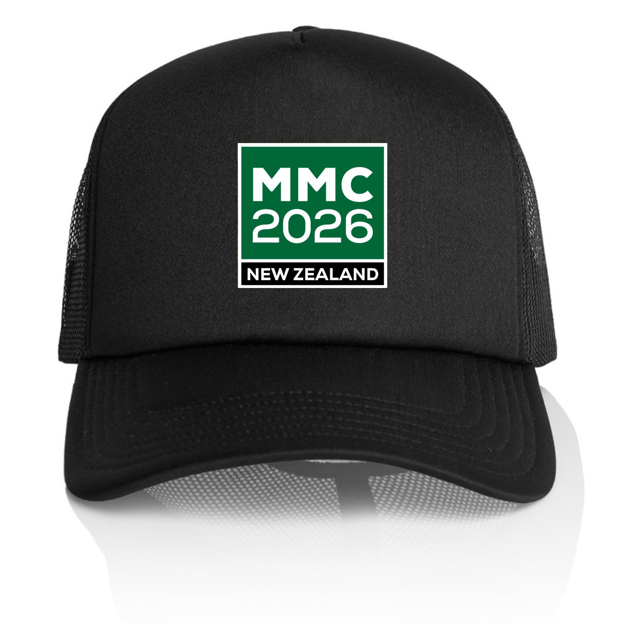 • Black 5 panel structured snap back, foam front cap with Mighty Men New Zealand logo