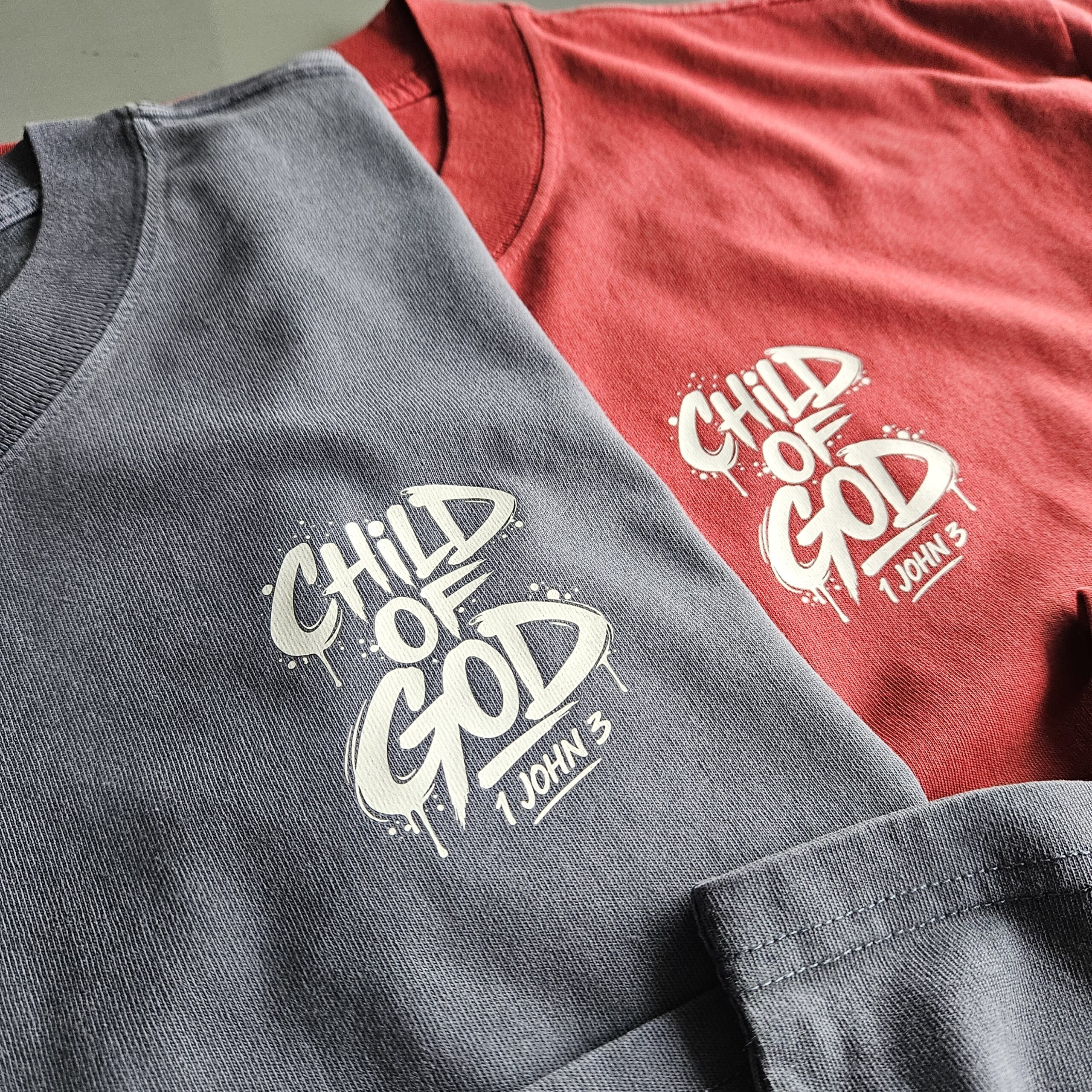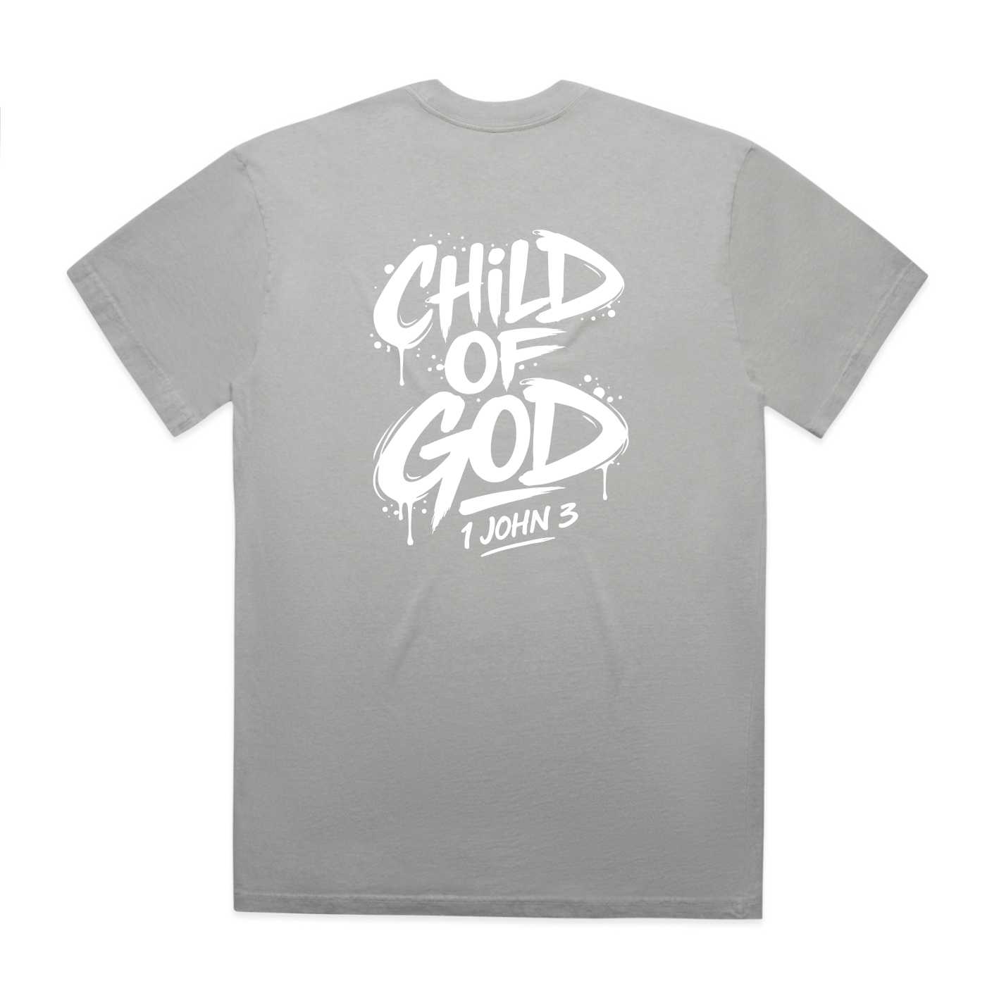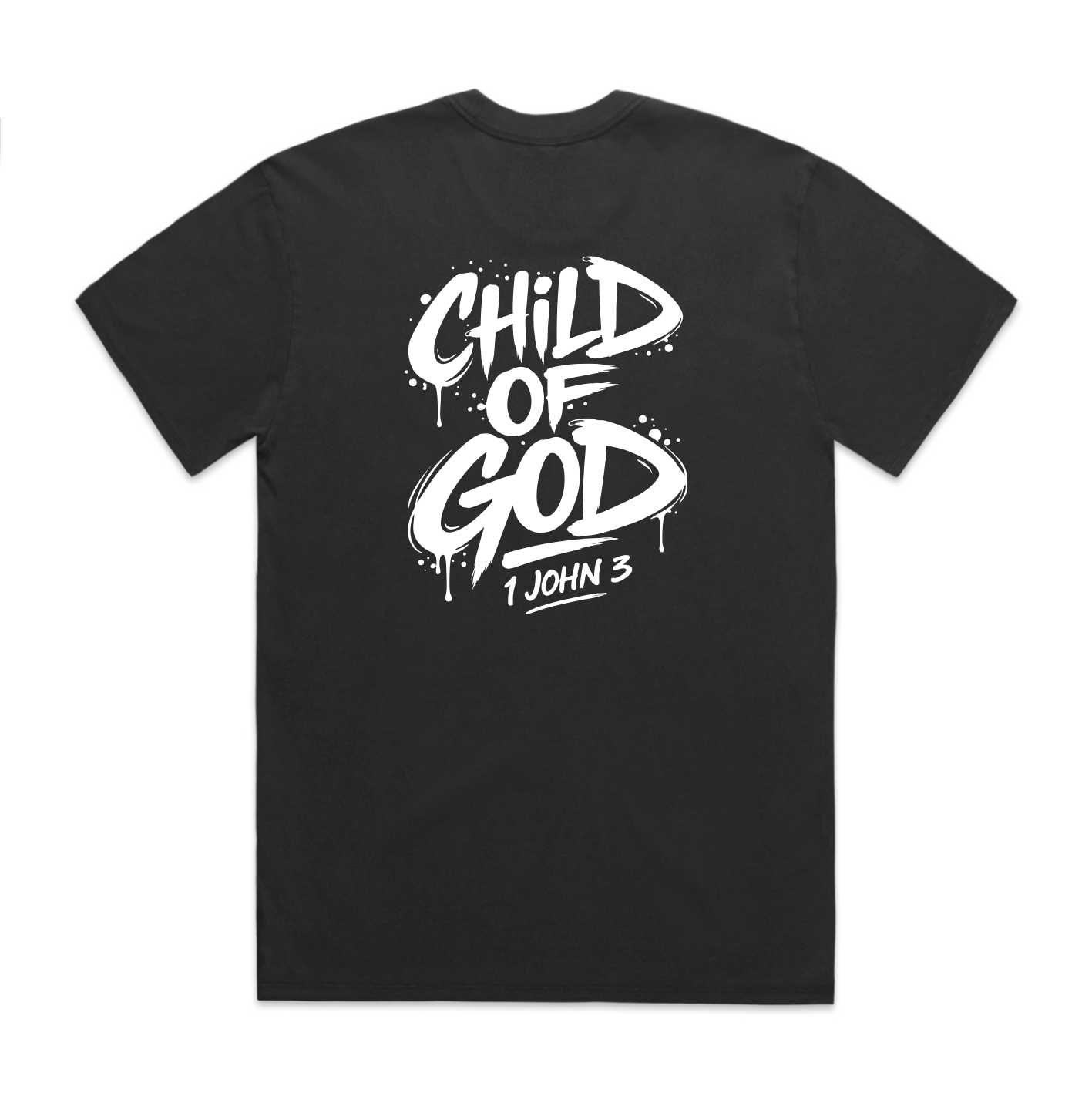 The Child of God men’s Christian T-shirt is made for men who want to wear their faith with confidence. The bold back print features a graffiti-style design with the words Child of God and 1 John 3, giving this shirt a strong streetwear look while keeping the message rooted in Scripture.