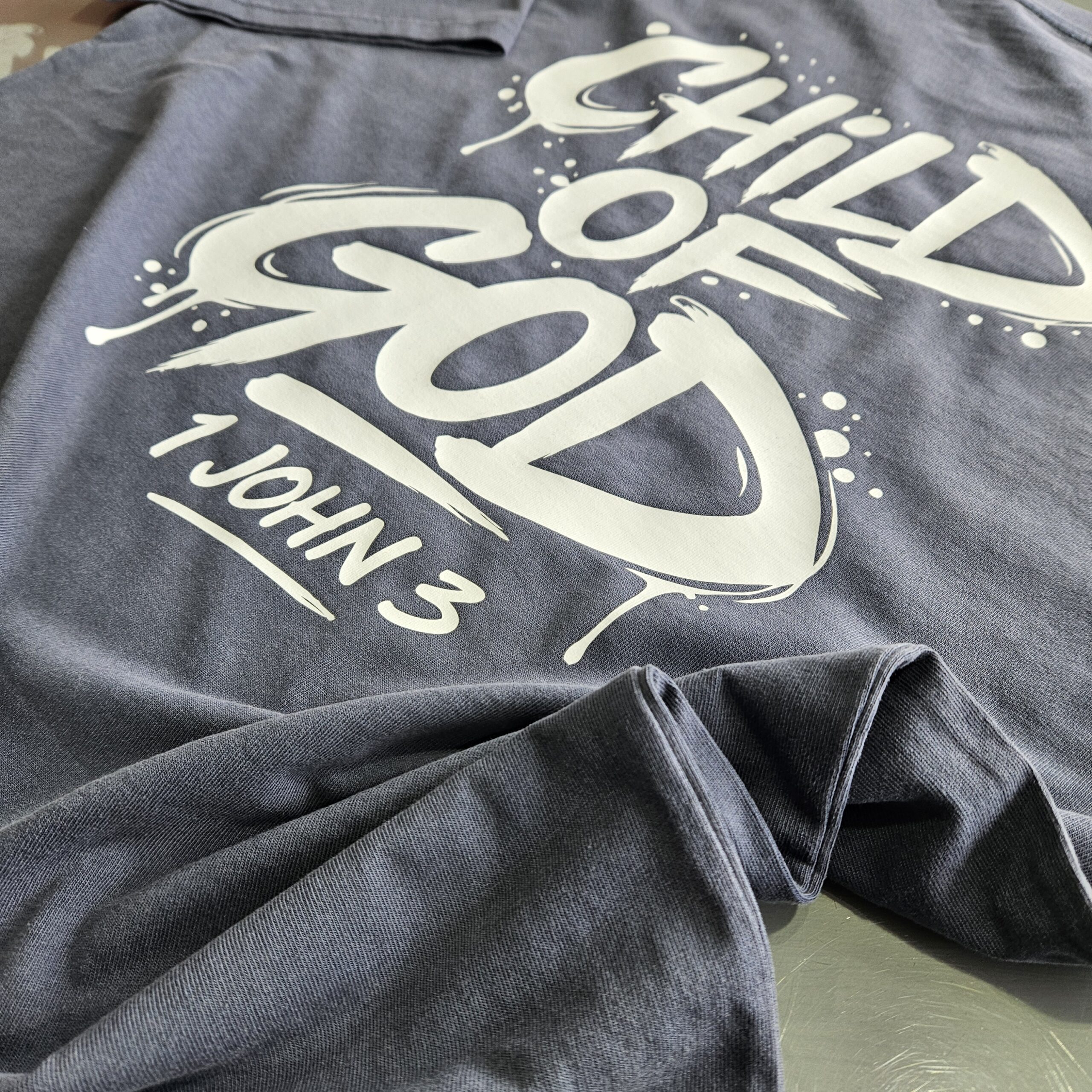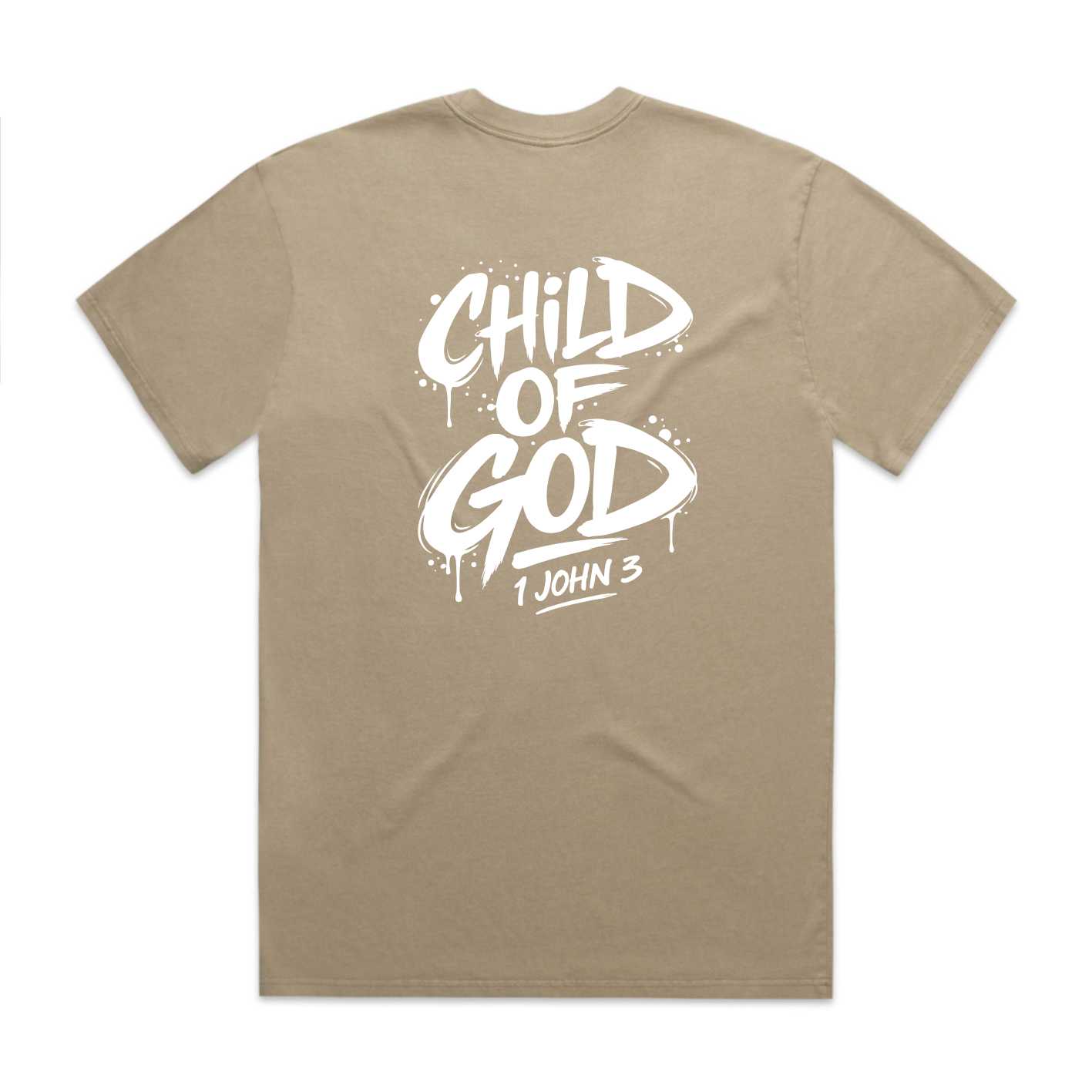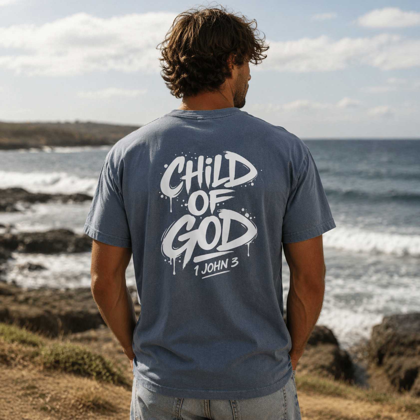 The Child of God men’s Christian T-shirt is made for men who want to wear their faith with confidence. The bold back print features a graffiti-style design with the words Child of God and 1 John 3, giving this shirt a strong streetwear look while keeping the message rooted in Scripture.