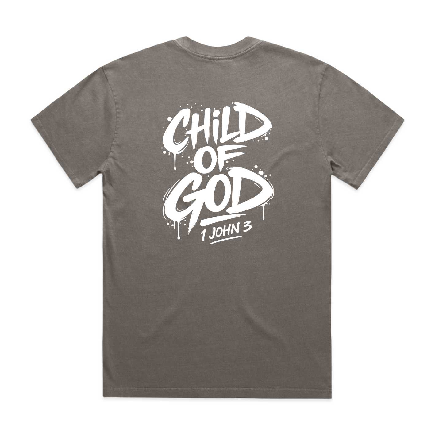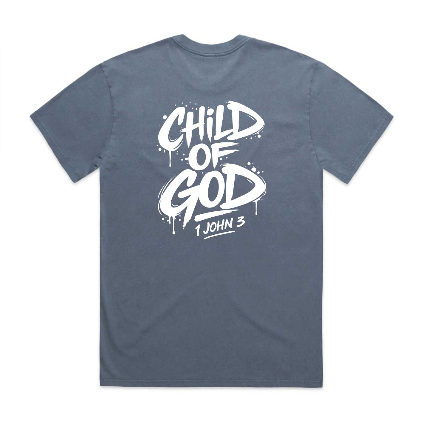Make a bold statement of faith with the Child of God men’s Christian T-shirt. This relaxed heavy faded tee features a striking back print inspired by 1 John 3 and is made for everyday comfort, durability, and timeless streetwear style. Available in Faded Cardinal, Faded Coal, Faded Grey, Faded Storm, Faded Indigo Blue, and Faded Khaki with free NZ shipping.