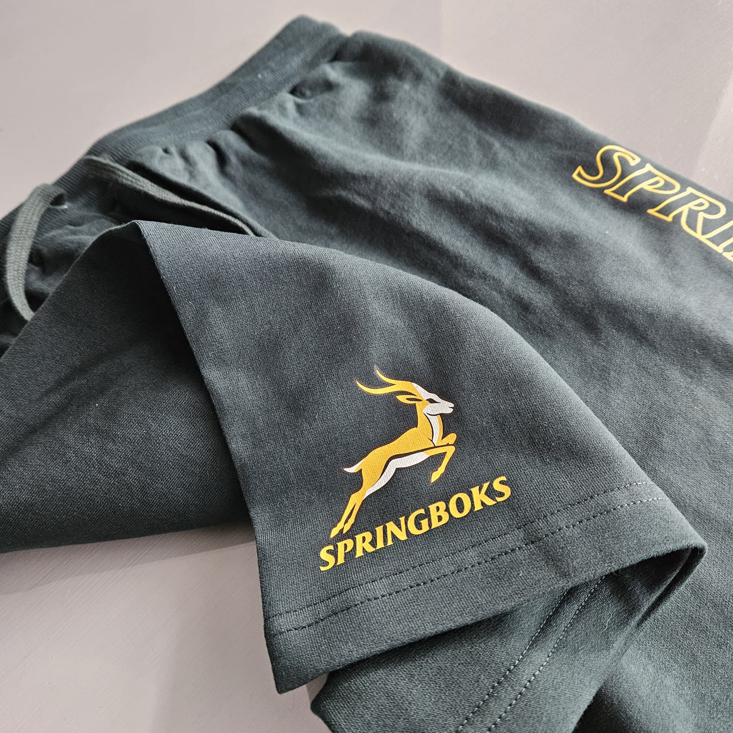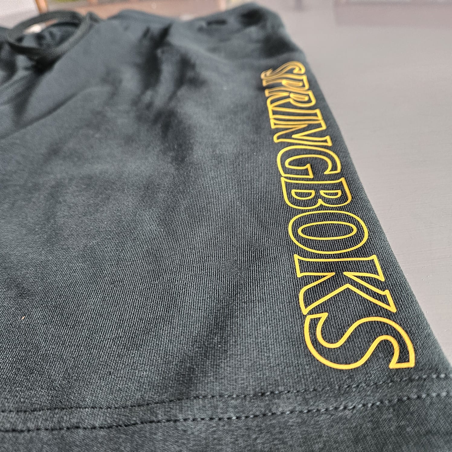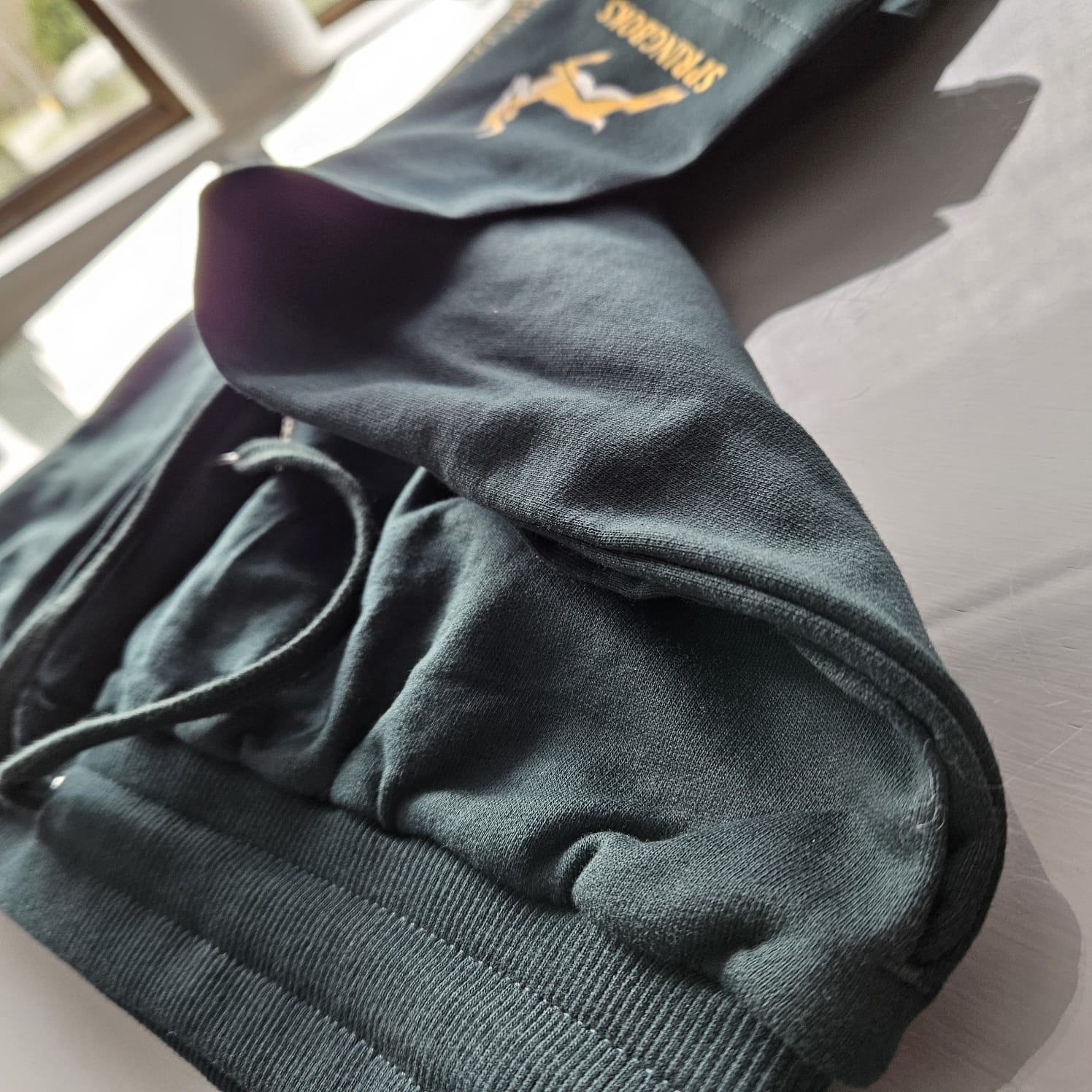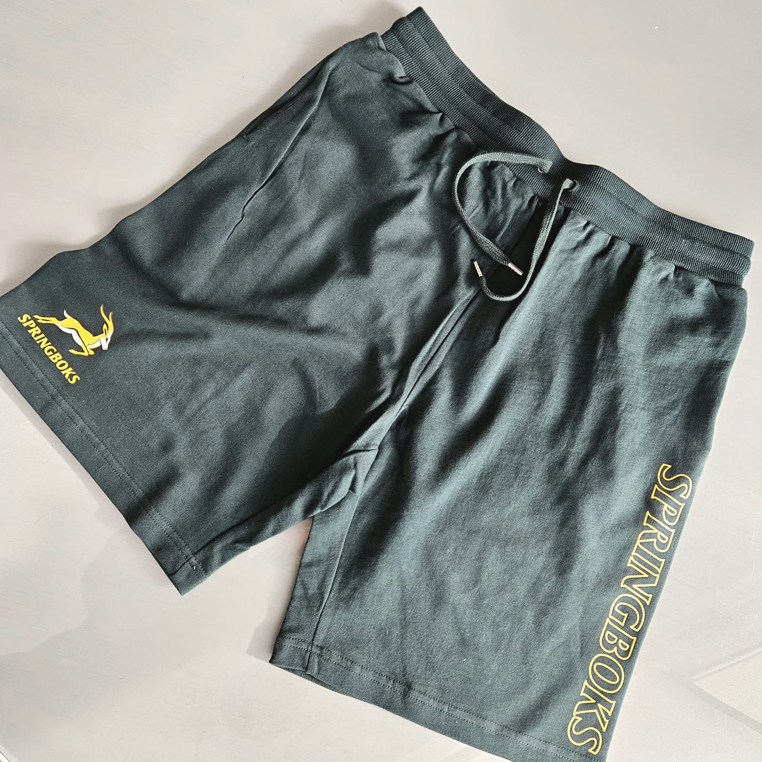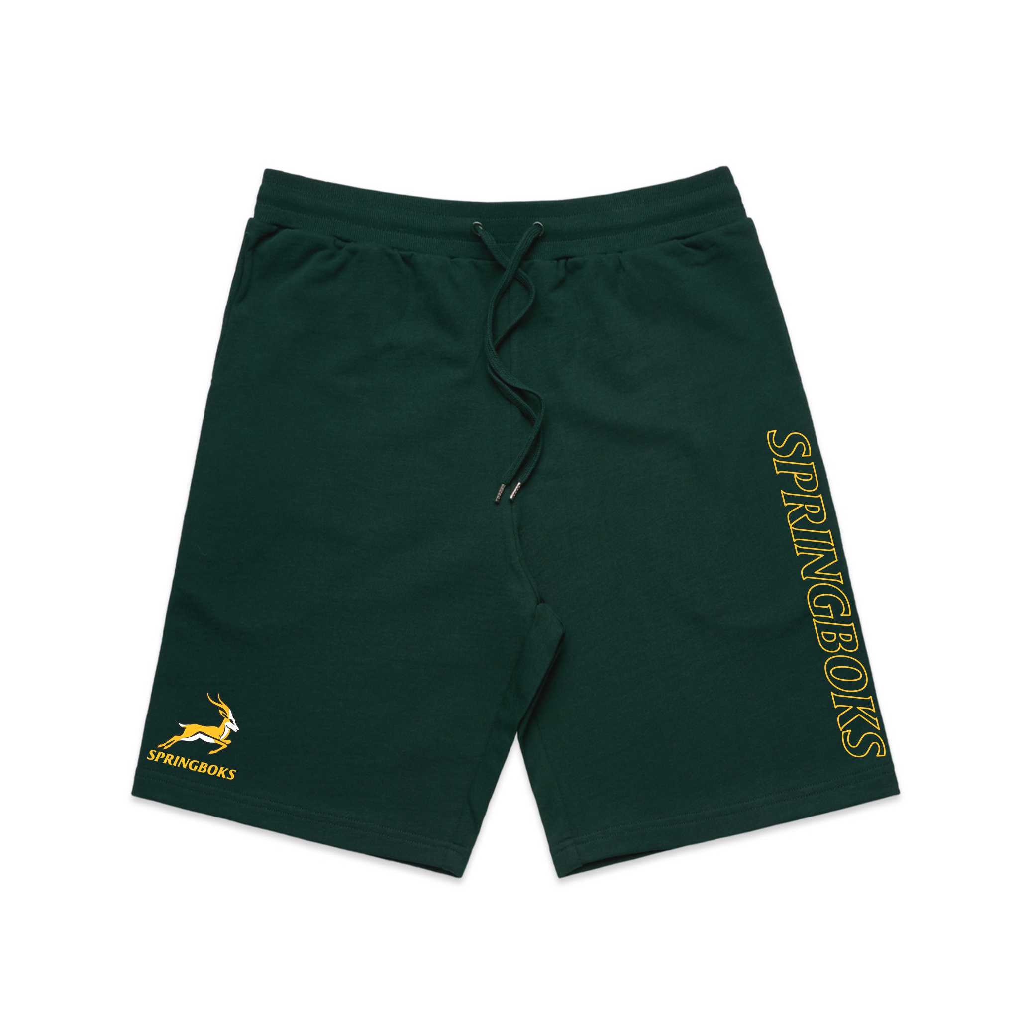 Dark Green Mid weight, 320 GSM, 100% cotton sweat shorts with 2 side and 1 back pocket, 2X2 ribbed waistband, tonal external drawcord, double needle hems, preshrunk to minimise shrinkage.